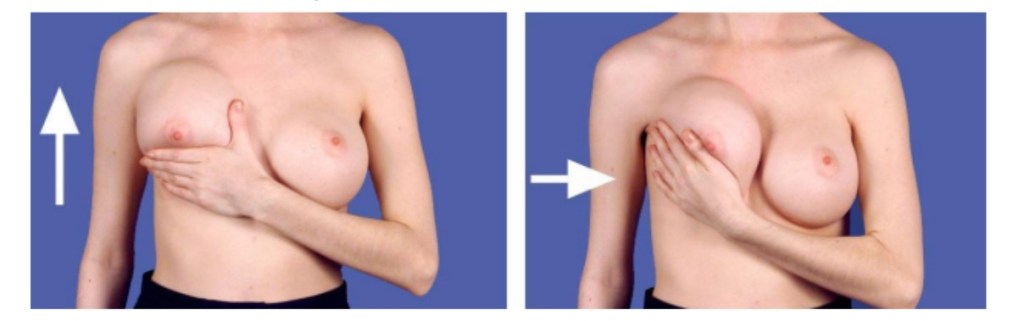 Los ejercicios deben realizarse 3 veces al día durante los primeros 6 meses, dos veces al día durante los próximos 6 meses y luego 1 vez al día de por vida. Cada seno debe empujarse suavemente y mantenerse en esa posición unos segundos antes de soltarlo.